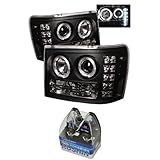 Carpart4u GMC Sierra 1500/2500/3500 / GMC Sierra Denali / GMC Sierra 2500HD/3500HD Halo LED Projector Headlights & Koshin Platinum White Halogen Light Bulbs package