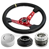 NRG-SRK-101H+200SL+101LS+006RDY, NRG Innovations 13.78" 350mm 3" Deep Dish Style Black Leather Yellow Center Marking Red Spokes Racing Steering Wheel Combo with 6 Hole Short Hub Adapter with Gen 2.0 Silver Quick Release with Silver Lock Hub Kit SRK-101H