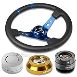 NRGSRK140HRG+200GM+101LS+016RBL, NRG Innovations 13.78" 350mm 3" Deep Dish Style Black Leather Blue Center Marking Blue Spokes Racing Steering Wheel Combo with 6 Hole Short Hub Adapter with Gen 2.0 Gun Metal Quick Release with Silver Lock Hub Kit SRK-140H